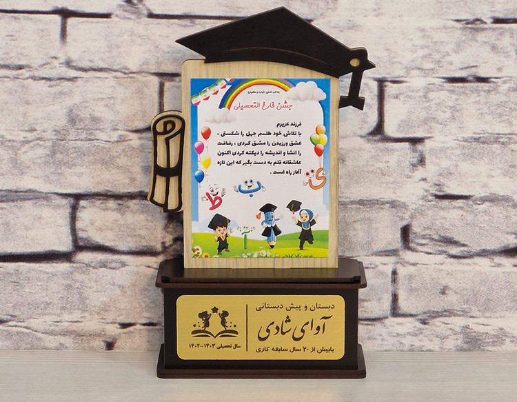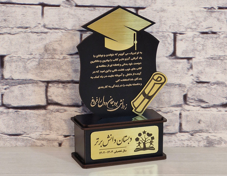 دانش اندر دل چراغ روشن است وز همه بد بر تن تو جوشن است تندیس فارغ التحصیلی یادبود آیئن تحصیلی ارتفاع کار ۲۲ سانت متریال معرفی: ام دی اف دورو و مولتی استایل طلایی قابل برای تمامی مقاطع پیش دبستانی ، ابتدایی ، راهنمایی و دبیرستان سفارشگیری فقط روی تعداد آماده همکاری با مهدکودکها و مدارس جهت استعلام و ثبت لطفا پیام بدید واتساپ ۰۹۱۱۷۹۴۹۹۱۰ ایتا. ۰۹۱۱۲۷۷۵۳۰۹ التحصیلی #