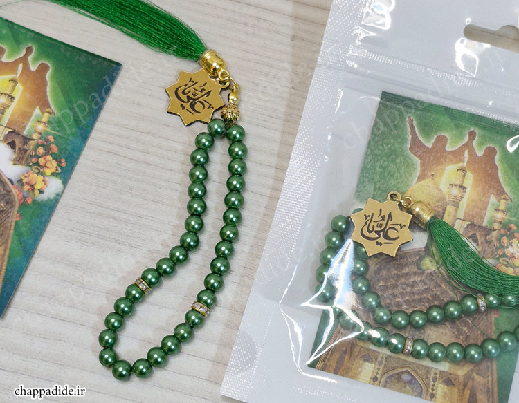 تسبیح 33 دانه مروارید سنگی رو با یه بسته بندی شیک و خاص به مهمونات هدیه بده دارای پلاک یا علی