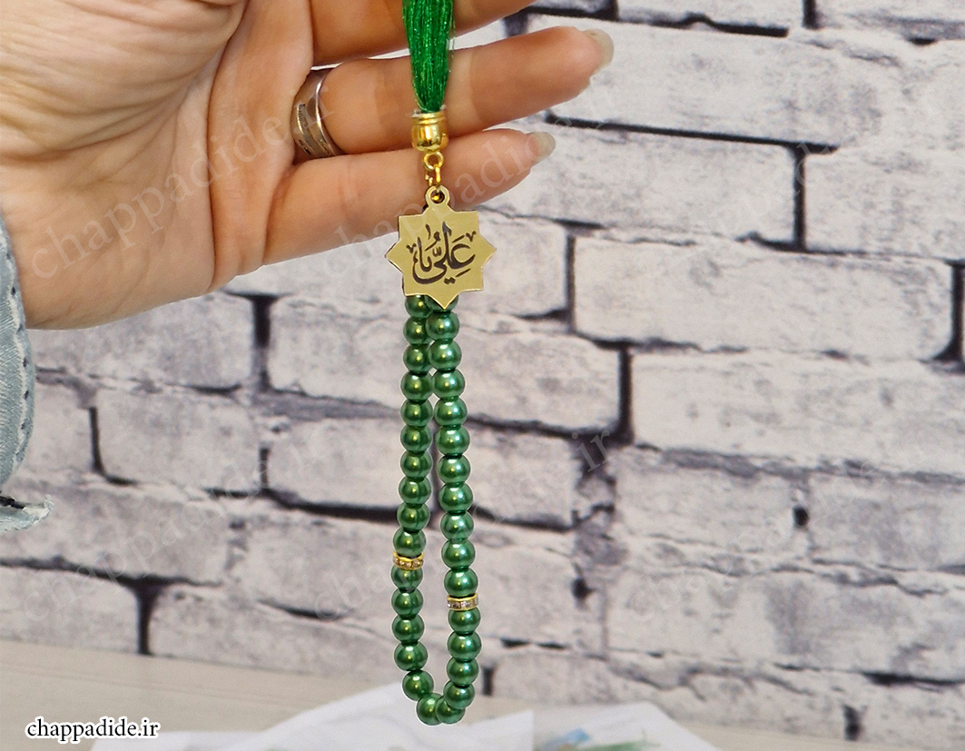 تسبیح 33 دانه مروارید سنگی رو با یه بسته بندی شیک و خاص به مهمونات هدیه بده دارای پلاک یا علی